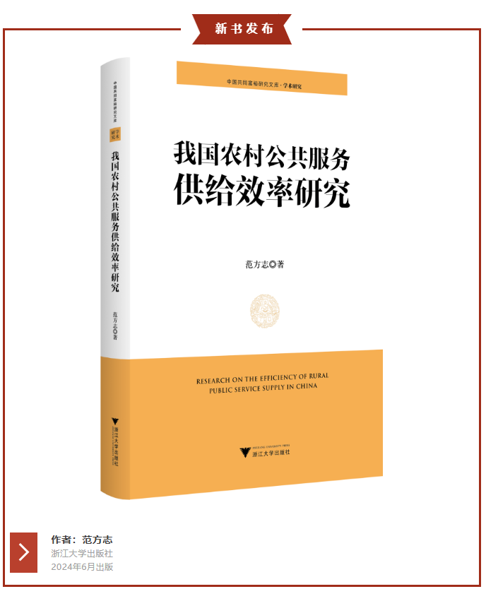 近日,我院研究员范方志教授专著《我国农村公共服务供给效率研究》由浙江大学出版社正式出版。